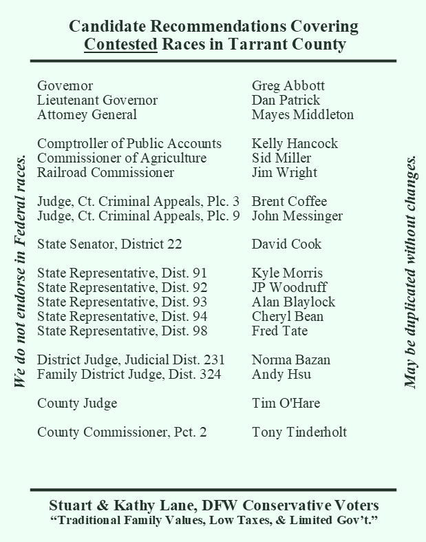DFW Conservative Voters PAC recommends: